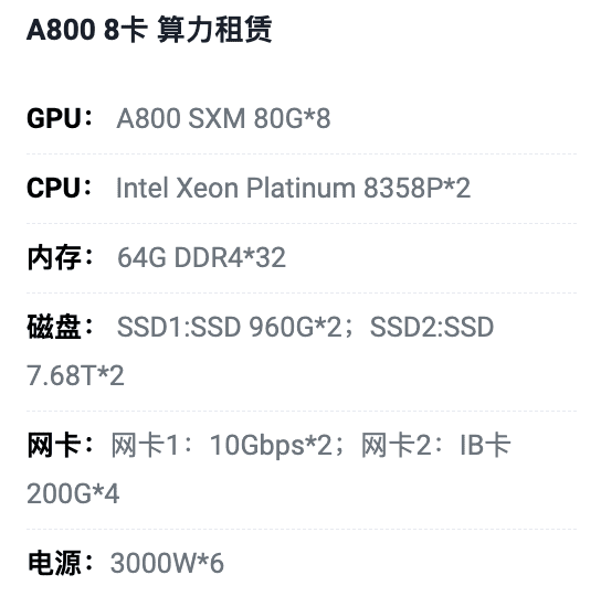 柳州A800八卡算力租用价格