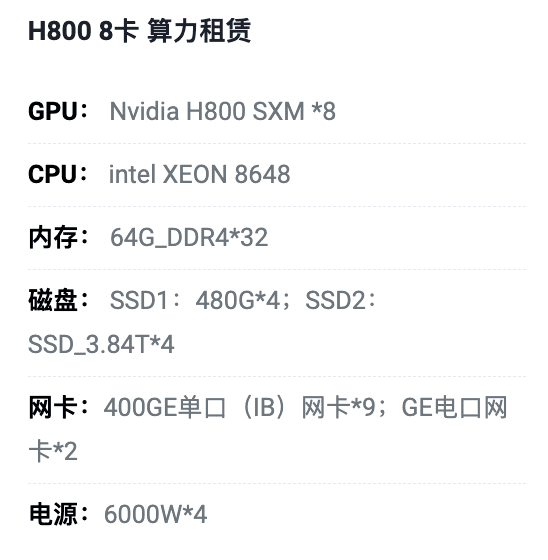 柳州H800八卡算力租用价格